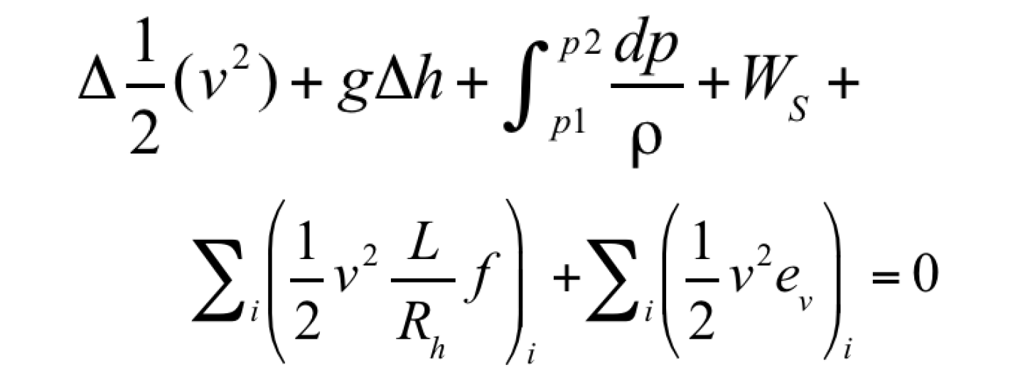 With respect to flow through pipes, the first law can be broken into frictional losses, potential energy (head), kinetic energy losses, losses at fittings/elbows, and shaft work (Ws). In this form, it is frequently called the Bernoulli equation.